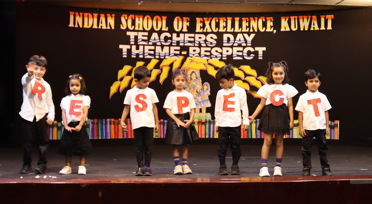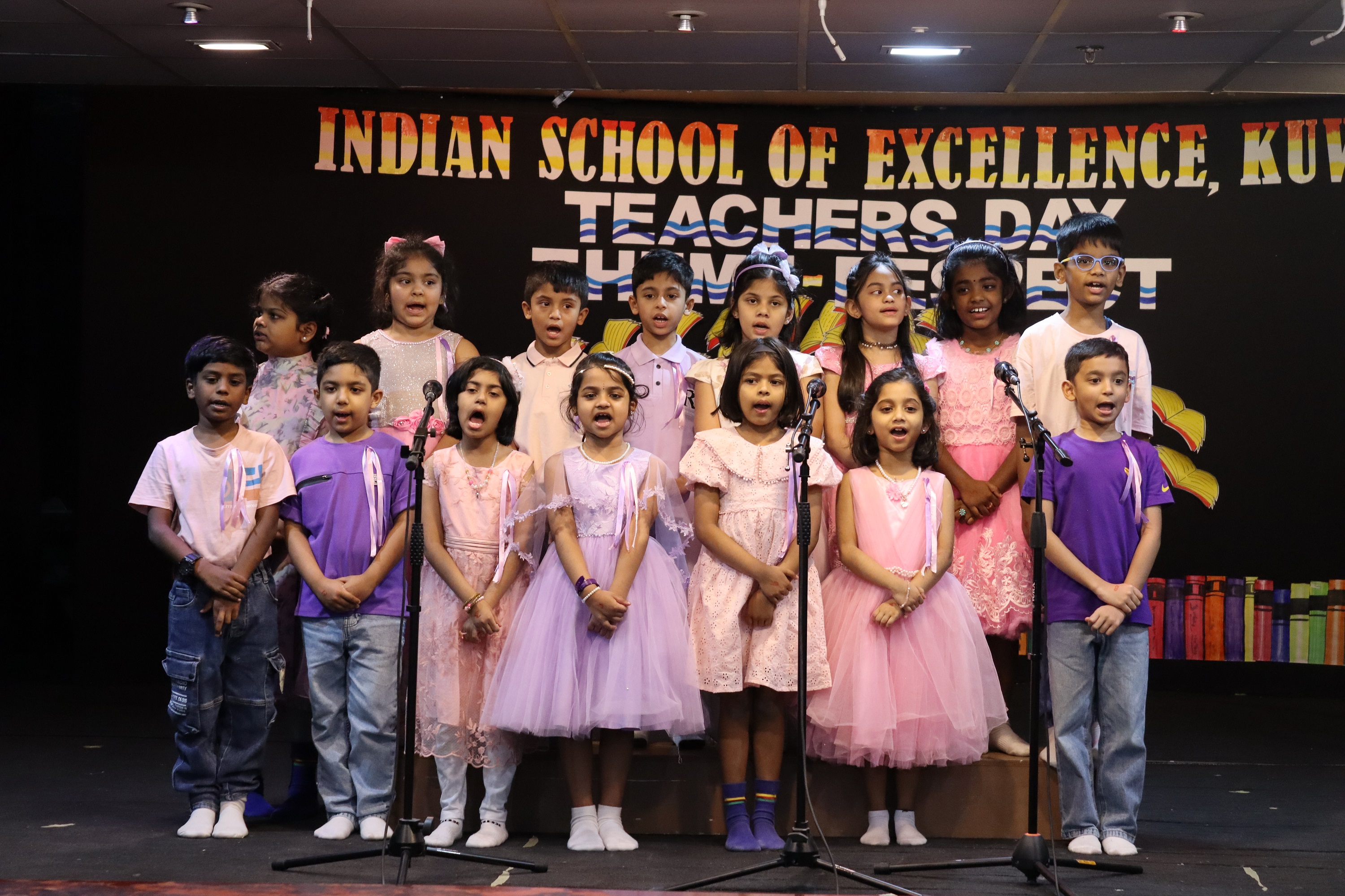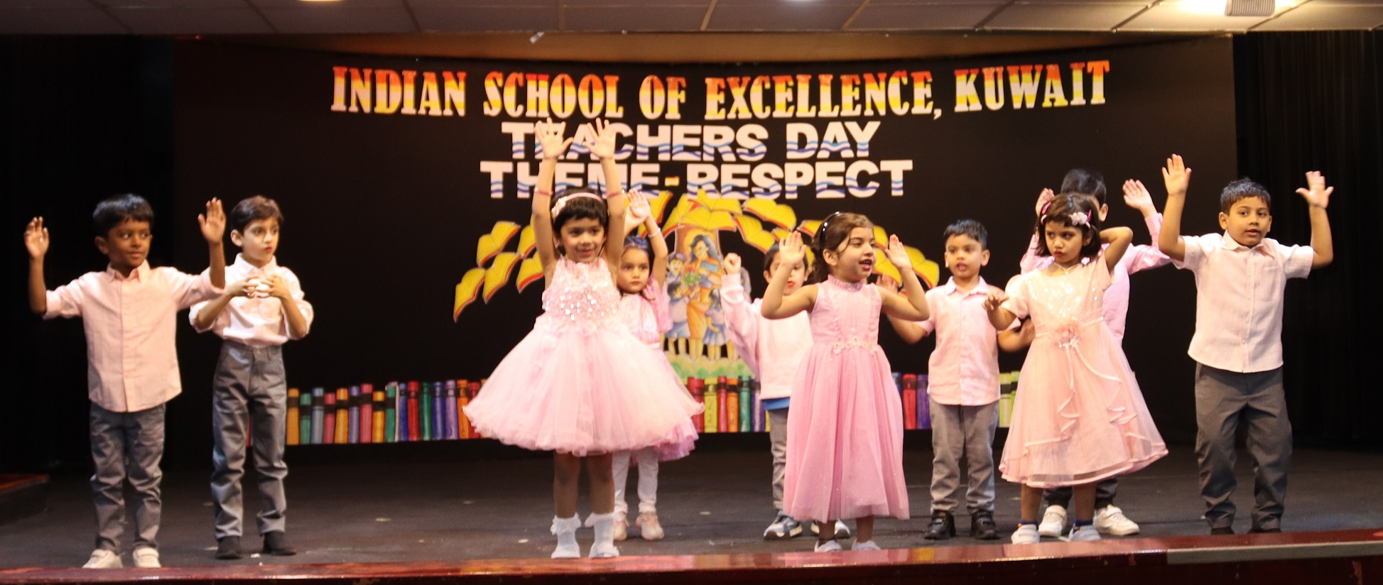 Teachers Day- My Teacher My Role Model "Teachers inspire, enlighten, and shape the future. They are not just educators; they are our guiding stars, our mentors, and our role models." The Indian School of Excellence Kuwait conducted KG assembly on 18th October 2023. The theme of the assembly was " My Teacher My Role Model " on the occasion of World Teachers Day. Our UKG students enacted a day showcasing how Teachers spend their day with the students. They realized the importance of being confident with the help of an act about rainbow. They also acquired knowledge about renowned educators from across the globe, who have made significant contributions and serve as contemporary role models. Mrs. Sherly Dennis, Director of the Indian School of Excellence Kuwait, addressed the audience, commended on how Teachers hard work and efforts help students grow. She also appreciated the students for their enthusiasm and participation. It was encouraging to see the students come together and showcase their talents and dedication towards celebrating World Teachers Day. The assembly ended with the Indian National Anthem.