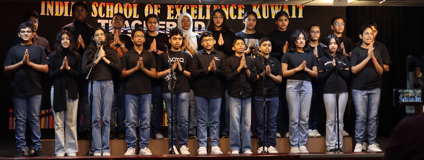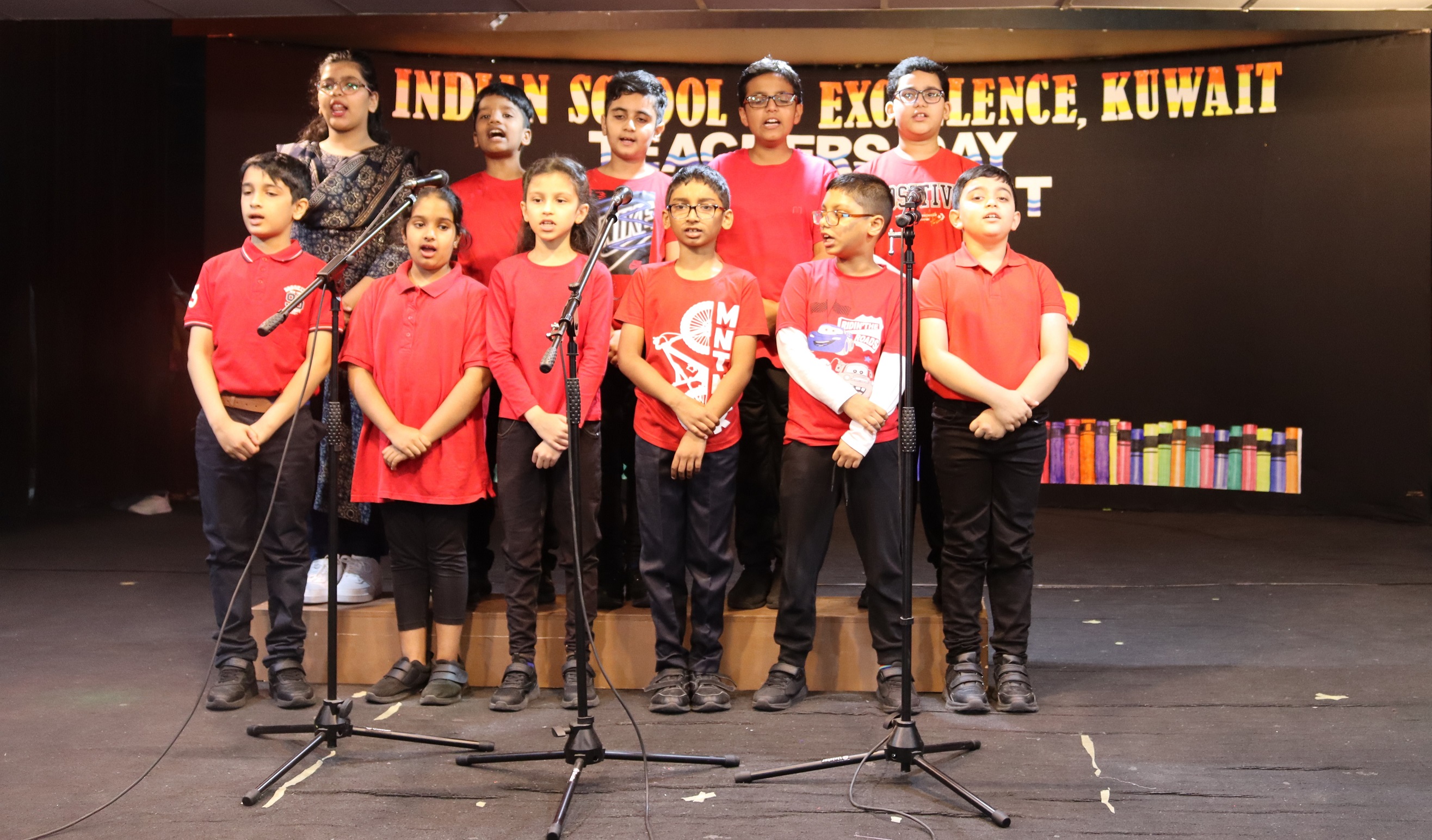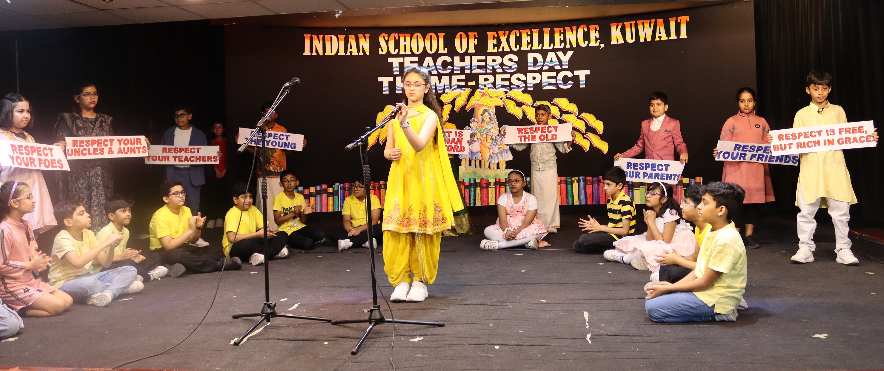 Teachers Day- My Teacher My Role Model "Teachers inspire, enlighten, and shape the future. They are not just educators; they are our guiding stars, our mentors, and our role models." The Indian School of Excellence Kuwait conducted KG assembly on 18th October 2023. The theme of the assembly was " My Teacher My Role Model " on the occasion of World Teachers Day. Our UKG students enacted a day showcasing how Teachers spend their day with the students. They realized the importance of being confident with the help of an act about rainbow. They also acquired knowledge about renowned educators from across the globe, who have made significant contributions and serve as contemporary role models. Mrs. Sherly Dennis, Director of the Indian School of Excellence Kuwait, addressed the audience, commended on how Teachers hard work and efforts help students grow. She also appreciated the students for their enthusiasm and participation. It was encouraging to see the students come together and showcase their talents and dedication towards celebrating World Teachers Day. The assembly ended with the Indian National Anthem.