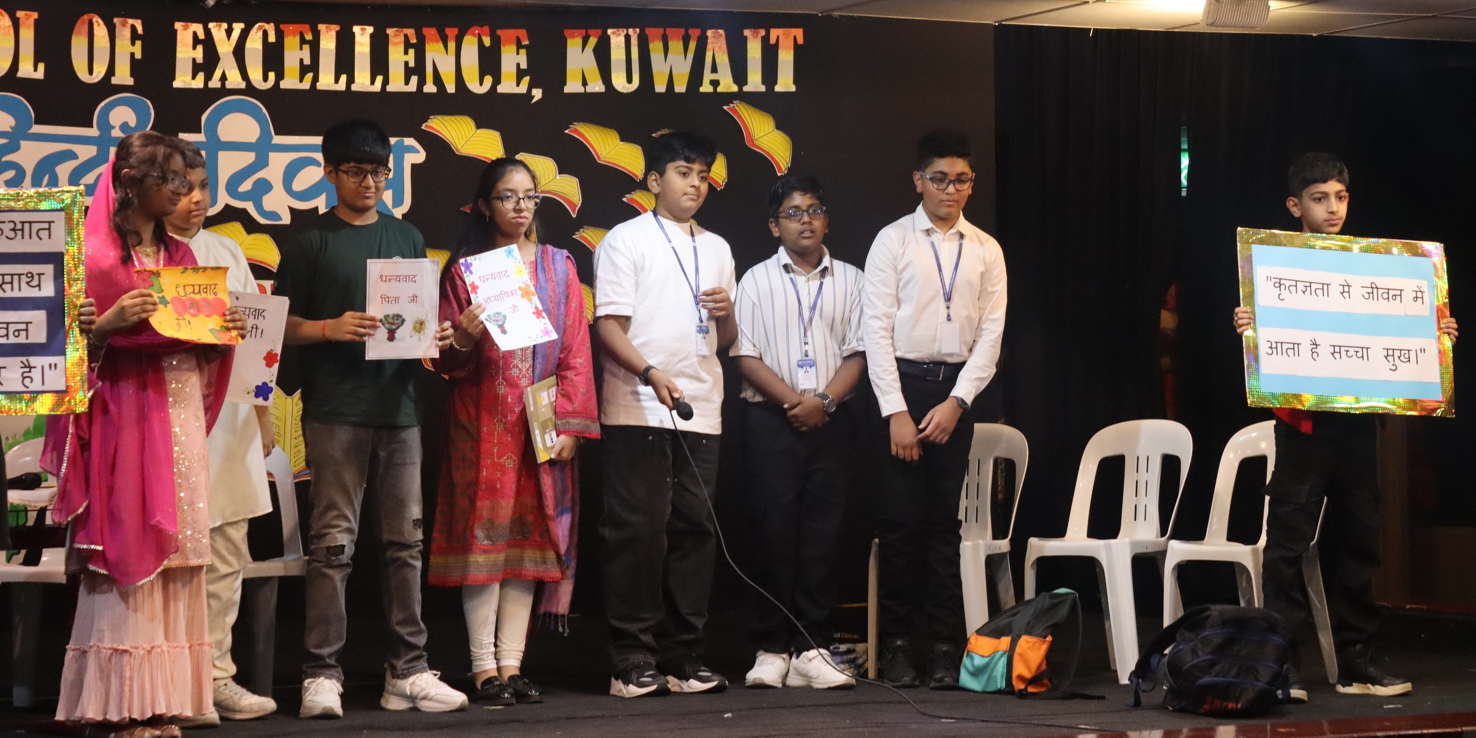 The Indian School of Excellence, Kuwait, marked Hindi Diwas 2025 on 15th and 16th September with lively assemblies for students of Classes 1 to 10. The assemblies included Islamic prayers and soulful songs, setting a reflective and celebratory tone. Students showcased their love for Hindi through group songs, skits, poem recitations, fashion shows, and energetic dance performances. The assemblies also highlighted the theme of gratitude (कृतज्ञता) through touching stories and speeches, emphasizing its role in life, relationships, and overall well-being. Mrs. Sherly Dennis, Director, ISEK, addressed the students, appreciating their efforts and motivating them to take pride in Hindi and speak it confidently. The assemblies concluded with the National Anthem, reflecting creativity, patriotism, and respect for the national language.