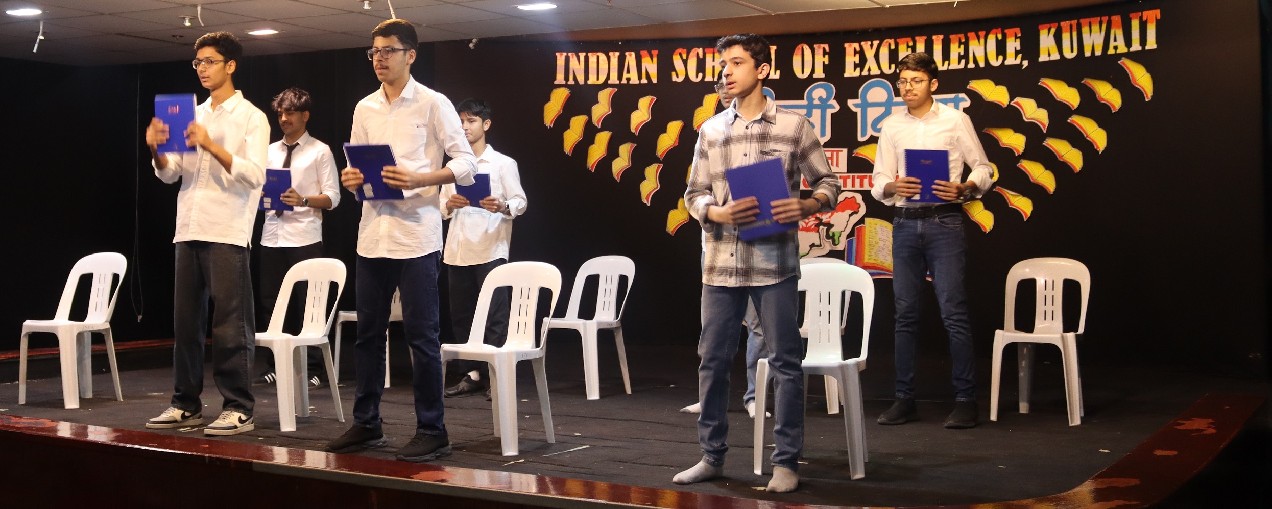 The Investiture Ceremony held at the Indian School of Excellence on 7th May marked a significant milestone, highlighting the emergence of new leaders within the school community. It served as a celebration of leadership and unity, symbolizing the commencement of a new chapter for the school parliamentarians. The event was graced by esteemed chief guest Mr. James Jacob, the Second Secretary of the Embassy of India to Kuwait, Director of the school Mrs. Sherly Dennis, Vice Principal Mrs. Bismitha Shamsuddin, and Primary Supervisor Mrs. Priya Mageshvaran. Mr. James Jacob bestowed sashes and badges upon the newly elected panel of school Parliamentarians, and Mrs. Sherly Dennis administered the oath, emphasizing the significance of deeds in leadership and the importance of actions over mere words. The chief guest addressed the gathering, shedding light on the election procedures happening in India and elaborating on the duties and responsibilities of a leader. Miss Aleeza Joseph, the elected school parliament President, delivered an acceptance speech reflecting a profound commitment to leadership guided by humility and compassion. And the School Parliament Prime Minister, Master Zishan Ali Kazim, emphasized the importance of leadership and service in his gratitude and promise speech. The ceremony concluded with expressions of gratitude from Mrs. Bismitha Shamsudeen and a rendition of the Indian National Anthem, symbolizing unity and patriotism. This Investiture Ceremony not only marked a significant moment for the school but also laid the foundation for a future generation of principled and effective leaders, dedicated to serving their community with excellence and integrity.