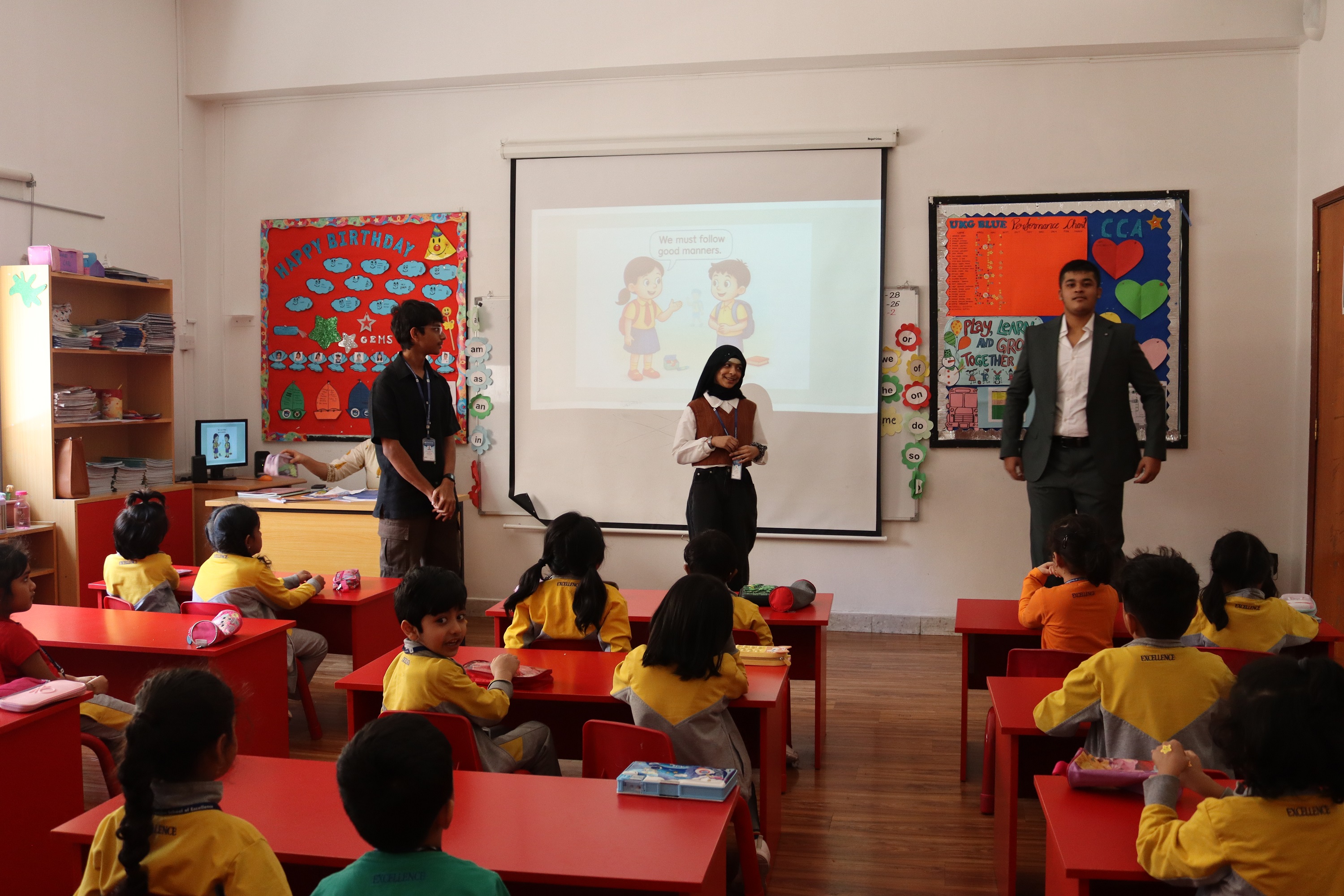 The Indian School of Excellence proudly hosted a session on 15th May,2024 of "Meet the Professional and Empowering the Future Leaders - School Parliamentarians," featuring the esteemed Honorary Secretary to the Board of Trustees ICSK and ISEK, Mr. Azharuddin Amer. The session began with a warm welcome from the Director of Indian School of excellence, Mrs. Sherly Dennis, who presented Mr. Amer with a sapling as a token of love and respect. Mr. Amer focused on the pivotal role of leadership, emphasizing how effective leaders can drive positive change and inspire others. His engaging and motivational talk encouraged students to embrace leadership roles with confidence and a sense of responsibility. The session also included an interactive session under “Meet the Professional" initiative, where Mr. Amer shared his extensive knowledge about the field of investment banking. He explained the significance of investment banking in the financial sector and outlined the responsibilities of an investment banker. He simplified complex financial concepts and made the session accessible and interesting for the students. Mr. Amer responded with enthusiasm to the insightful questions by our students. The event concluded with a felicitation and thanking Mr. Amer for his invaluable contribution to the students' educational journey. Overall, the session was a tremendous success, leaving the young parliamentarians and students of Grade 8 and 9 of the Indian School of Excellence empowered and inspired.
