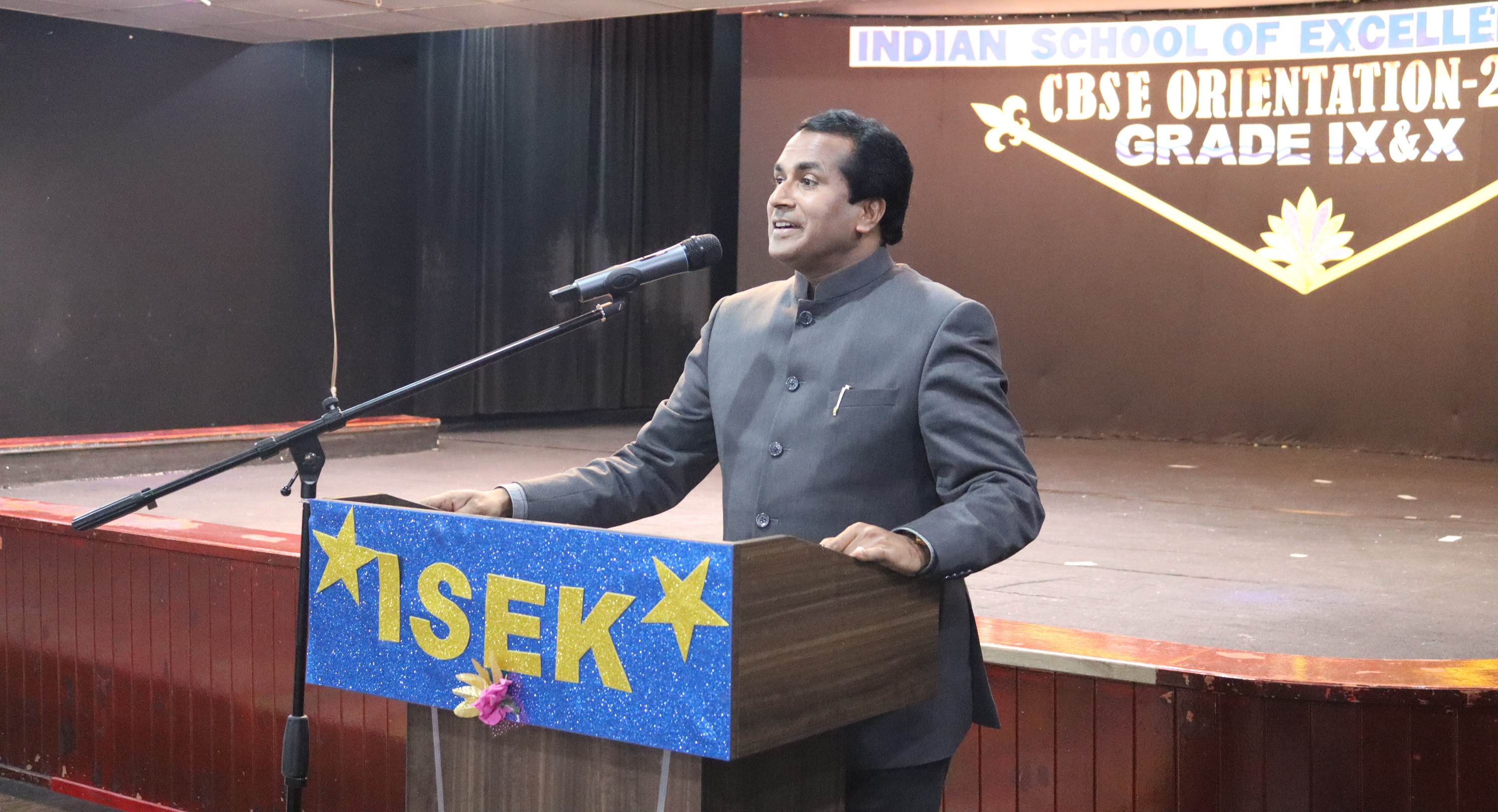 The Indian School of Excellence conducted a CBSE Orientation Programme for the students and parents of Grades 9 and 10 on Saturday, 4th October, in the school auditorium. The session was led by Dr. V. Binumon, Senior Administrator and Principal of ICSK Senior and CBSE Coordinator for Kuwait. Mrs. Sherly Dennis, Director of the Indian School of Excellence, welcomed Dr. V. Binumon by presenting a small token of gratitude symbolizing the school’s philosophy of growth through knowledge and nurturing values. The orientation aimed to familiarize the students and parents with the CBSE examination pattern, guidelines, and overall examination process. Dr. V. Binumon shared valuable insights about the new CBSE exam pattern. He also elaborated on the structure of assessments, evaluation criteria, and effective strategies for academic success under the CBSE framework. The session was highly informative and inspired students to approach their examination with great confidence, enabling both students and parents to gain a clear understanding of the recent changes and expectations in the CBSE system and the procedures for the upcoming board examinations.