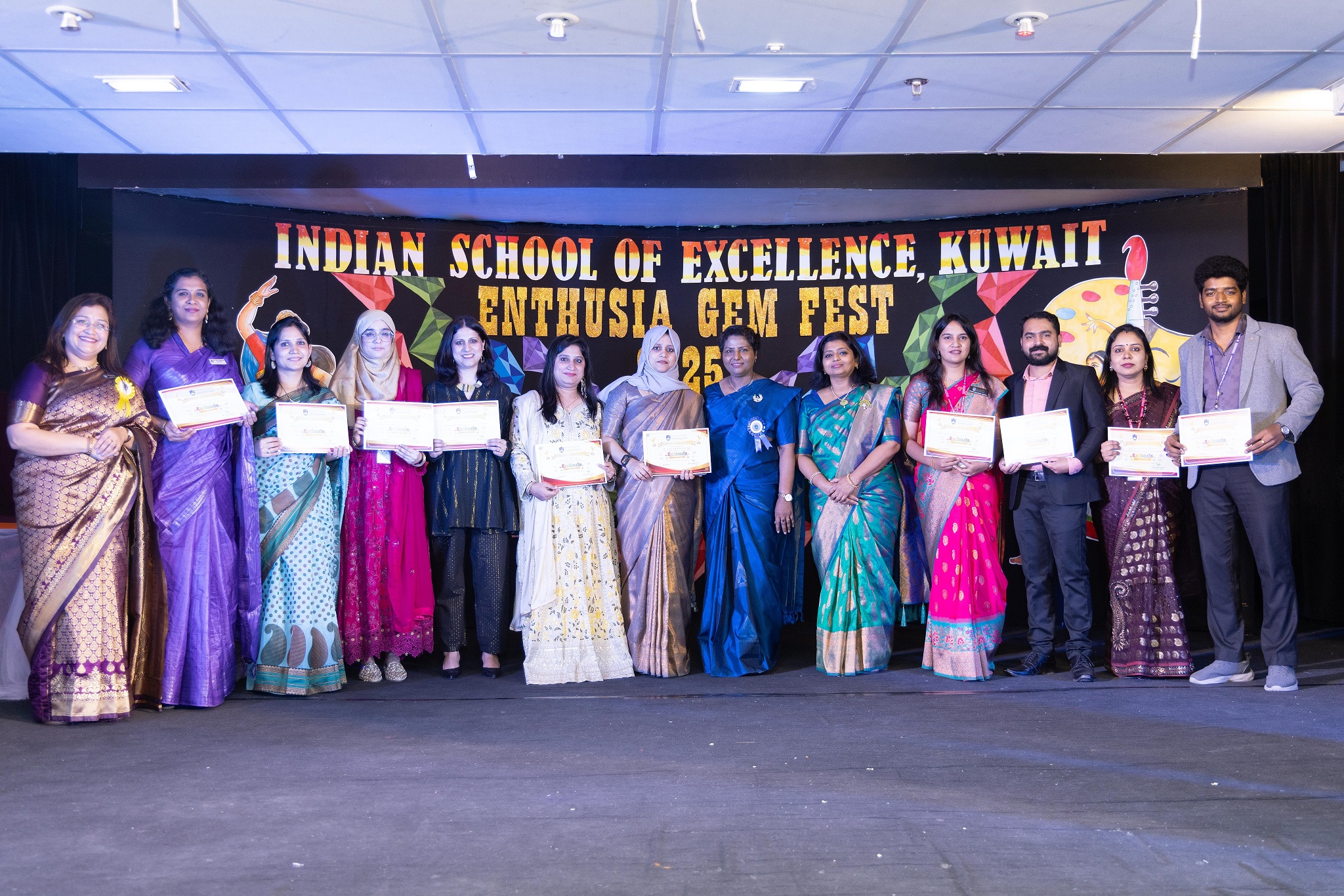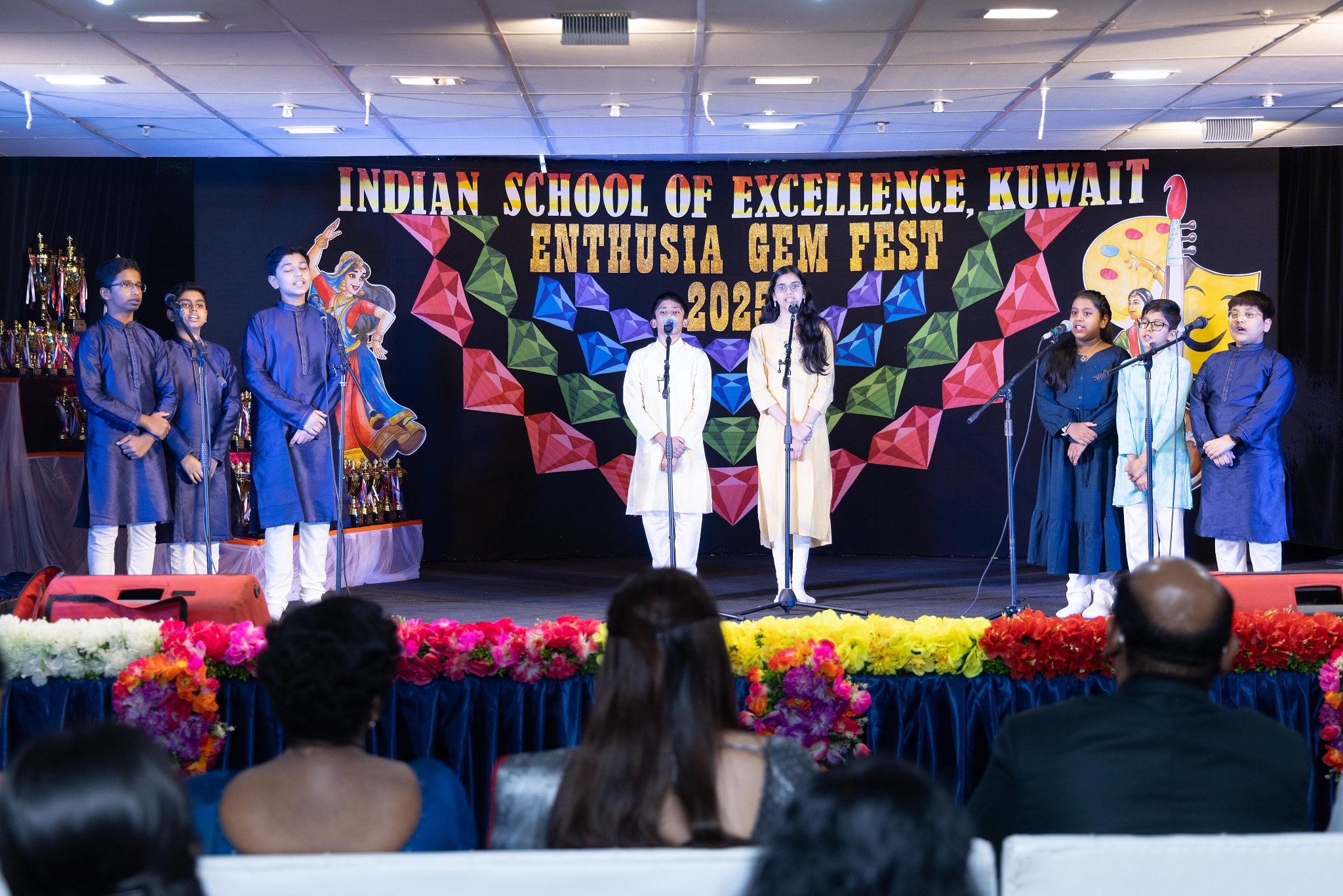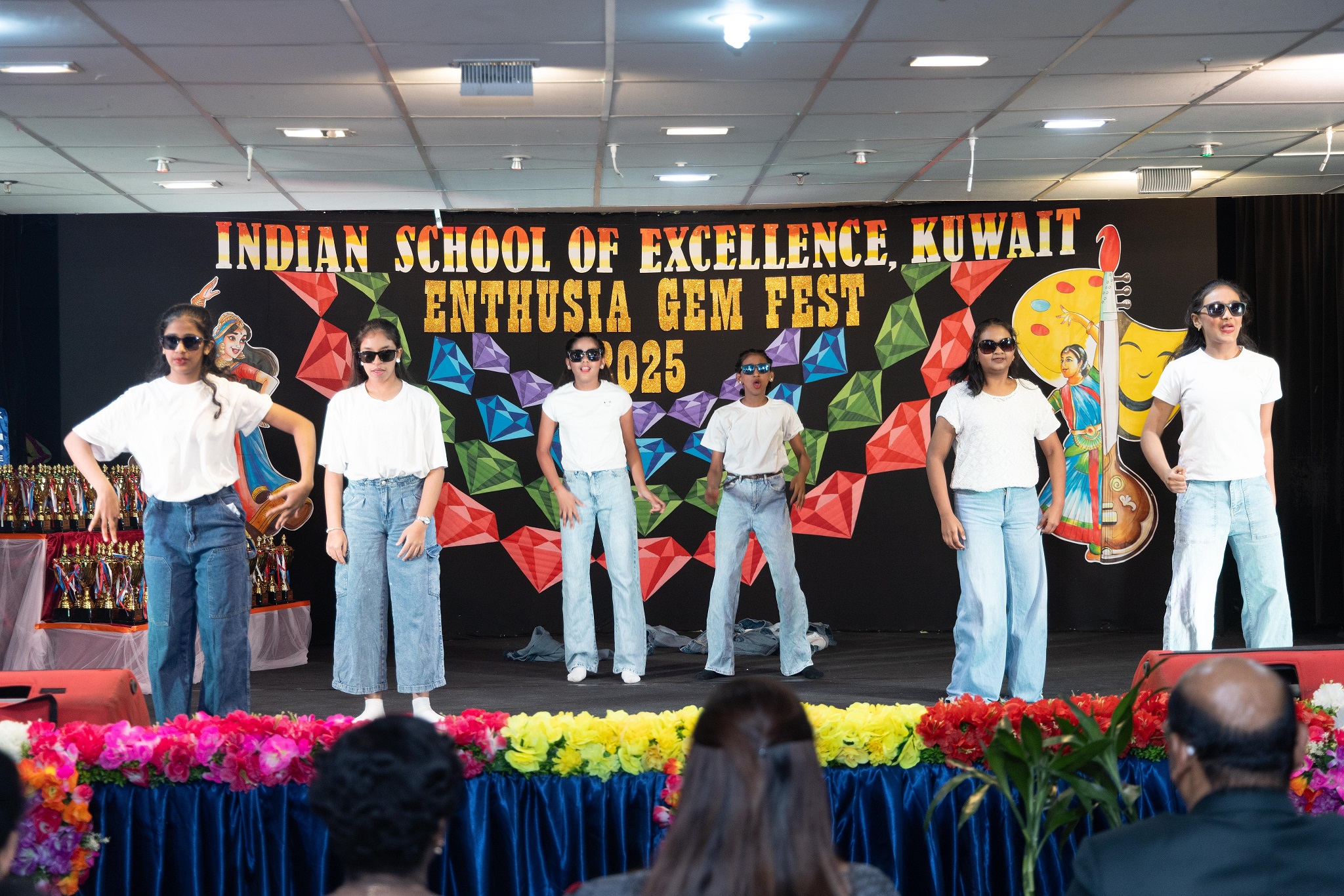 “Gems of talent sparkle brightest when brought together.” Indian School of Excellence Kuwait organized Enthusia Gem Fest’ 25, for the students from 28th August to 13th September 2025, a grand celebration of talent, creativity, and school spirit. Students participated in a wide range of competitions that gave them the opportunity to showcase their diverse skills. Over the course of five days, 39 competitions were held for 2470 participants, reflecting the remarkable talent and creativity of the students of ISEK. The Award Ceremony was held on 18th September 2025 and was graced by the presence of the Chief Guest, Dr. Shashikala. The event was organized with grandeur and enthusiasm, and it brought together the entire school community. Mrs. Sherly Dennis, Director of Indian School of Excellence delivered the welcome address, setting the tone for the celebration. The cultural segment featured a wide variety of vibrant performances that left the audience mesmerized. These included the invocation dance, welcome dance, group performances, and melodious songs, which showcased the creativity and talent of the students. A special highlight of the evening was the unique Tutting Dance performance, which stood out as one of the most captivating moments of the fest. The Chief Guest, Dr. Shashikala, in her address, inspired the gathering with words of encouragement and motivation, commending the efforts of the school in nurturing excellence and creativity. The Prize Distribution Ceremony honoured winners in the four categories – Kinder Gems, Sparkling Gems, Ethereal Gems, and Incredible Gems – with trophies and certificates. The joy and pride on the faces of the students as they received their awards made the evening truly memorable. The announcement of the Overall Champions – Gems of ISEK added great excitement and energy. The title was not only a recognition of excellence but also a symbol of the dedication, hard work, and passion of the students. ENTHUSIA GEM FEST ‘25 was a celebration of creativity, teamwork, excellence, and the vibrant spirit of the Indian School of Excellence. It left behind cherished memories, strengthened bonds within the school community, and stood as a testament to the school’s commitment to nurturing talent and inspiring excellence.